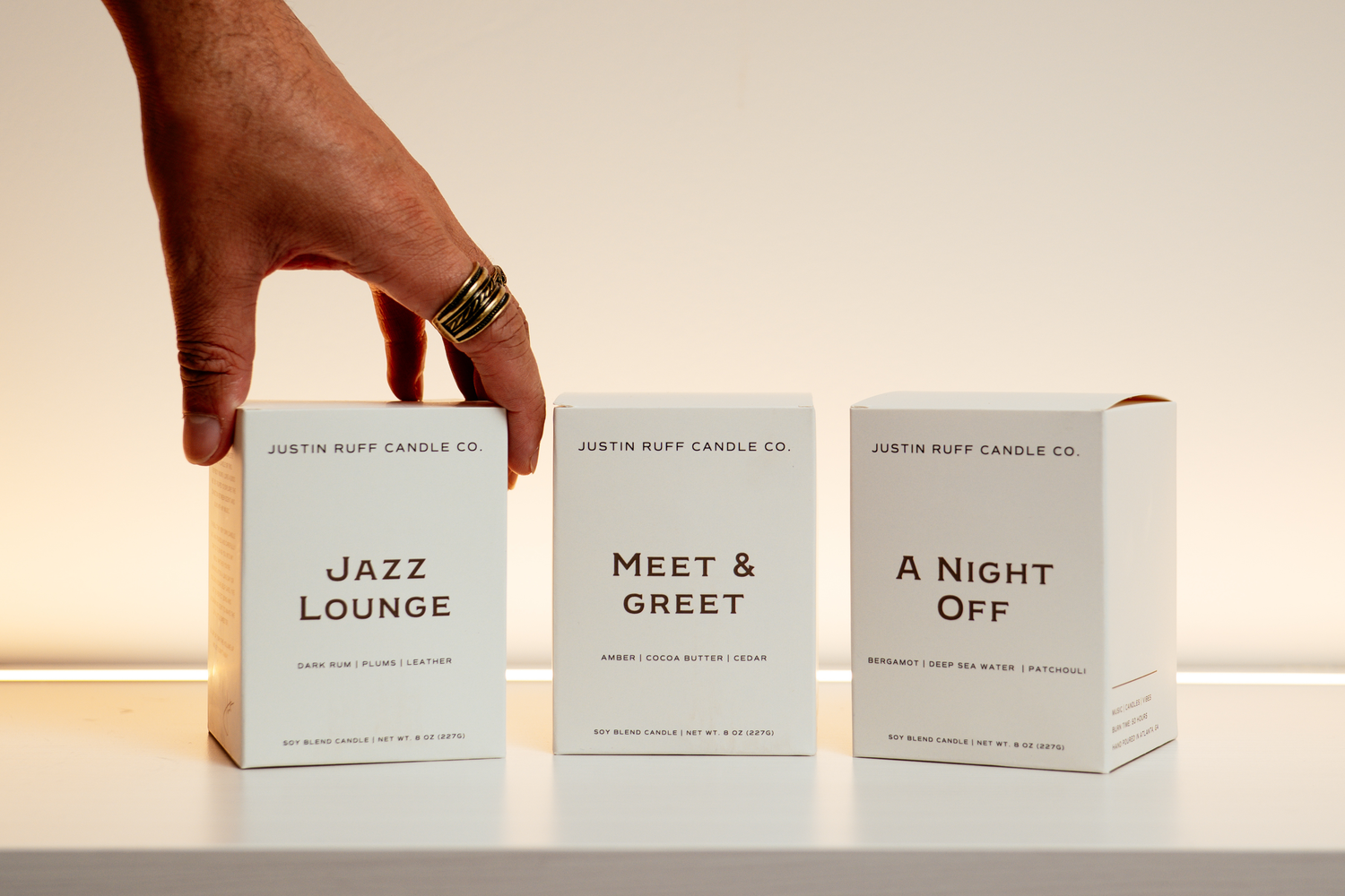 Whether it’s a chill night in with one of our curated playlists or a live show by yours truly paired with our luxurious fragrances, Justin Ruff Candle Co. is all about turning everyday experiences into fully immersive journeys.