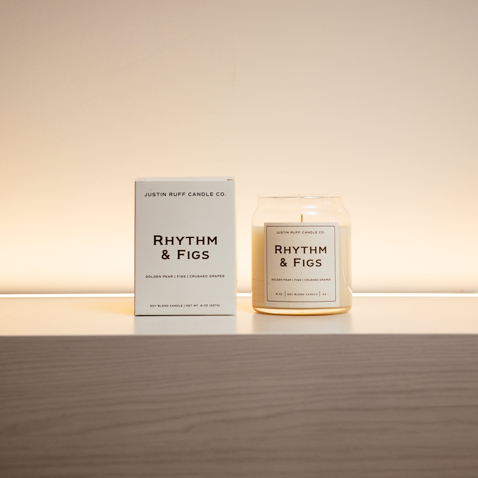 Soy Wax Blend. 8 oz. (227g). 50 Hour burn-time. Dimensions: 3″ diameter, 3.63″ tall